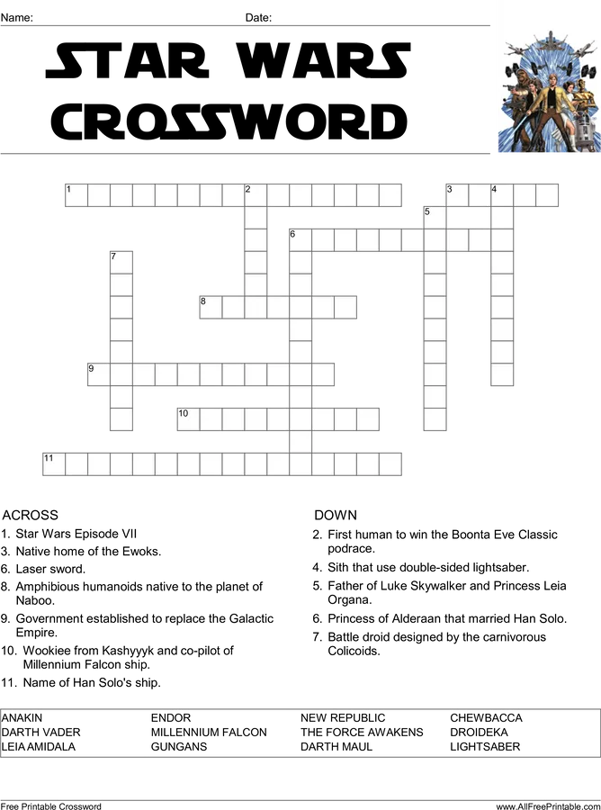 Star Wars Crossword Puzzle -